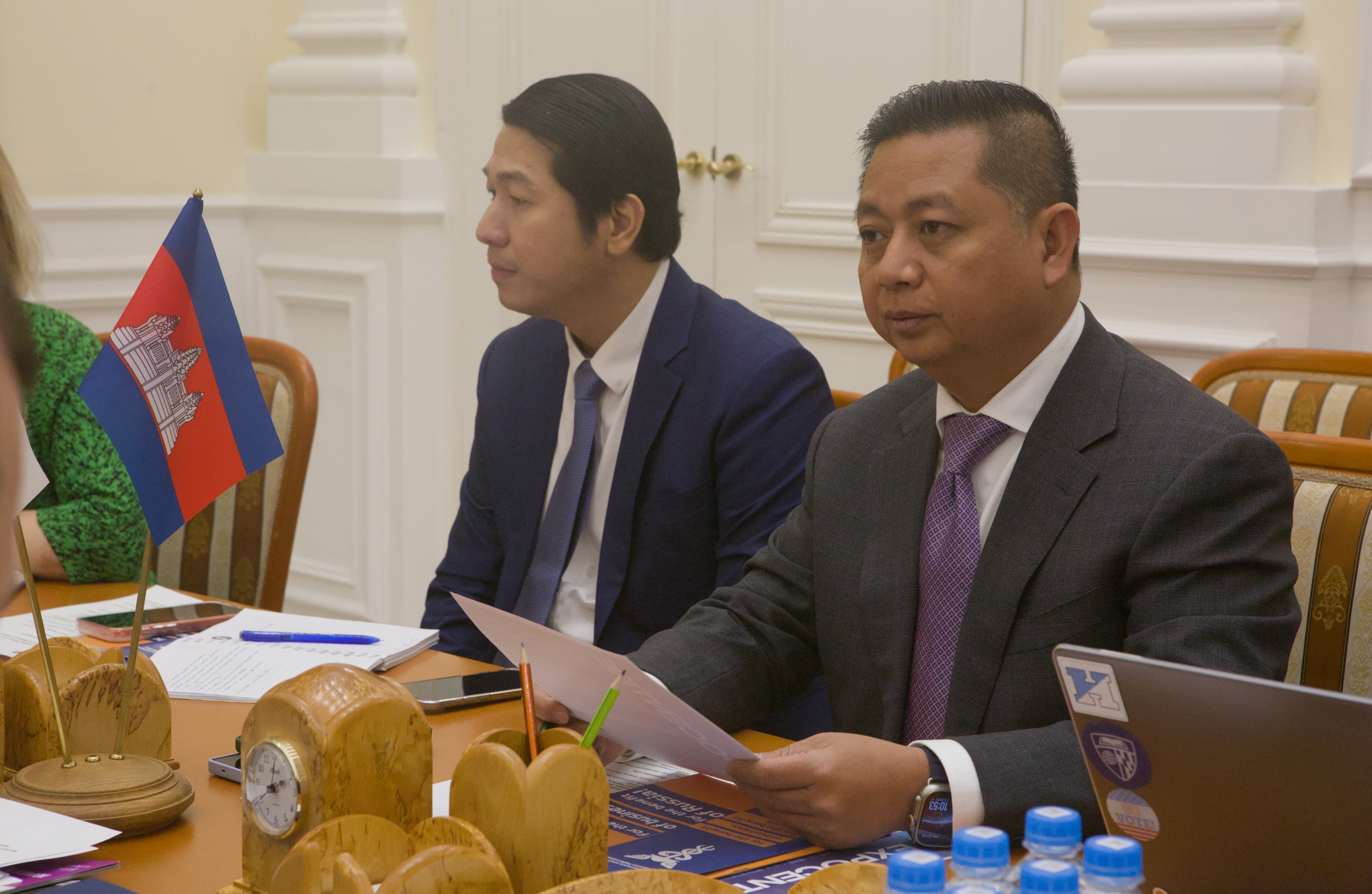 Кроме того, в рамках рабочей встречи компании-члены Делового совета Россия-АСЕАН презентовали конкретные технологические решения, готовые к локализации на камбоджийском рынке. Данил Насибуллин, проектный менеджер, Дирекция по международному сотрудничеству EN+ (крупнейший производитель низкоуглеродного алюминия и возобновляемой энергии в России), обозначил возможности взаимодействия в области «зелёной» энергетики и модернизации гидроэнергетических мощностей, что соответствует задаче Камбоджи по удовлетворению растущего спроса на электроэнергию. Евгений Баранов, заместитель начальника коммерческого департамента по стратегическому планированию, «Т8», презентовал инвестиционные проекты в области телекоммуникаций, включая передовые волоконно-оптические технологии и решения для центров обработки данных, которые могут лечь в основу цифровой трансформации королевства.